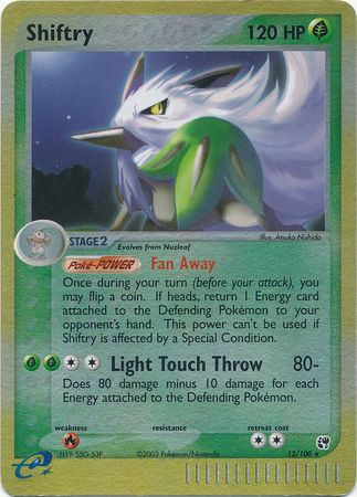 Once during your turn (before your attack), you may flip a coin. If heads, return 1 Energy card attached to the Defending Pokémon to your opponent's hand. This power can't be used if Shiftry is affected by a Special Condition.