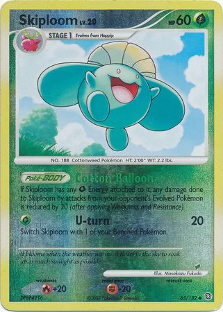 If Skiploom has any Grass Energy attached to it, any damage done to Skiploom by attacks from your opponent's Evolved Pokémon is reduced by 20 (after applying Weakness and Resistance).