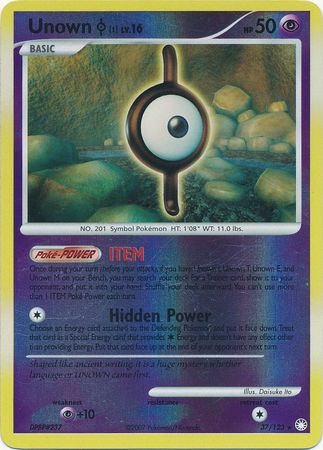 Once during your turn (before your attack), if you have Unown I, Unown T, Unown E, and Unown M on your Bench, you may search your deck for a Trainer card, show it to your opponent, and put it into your hand. Shuffle your deck afterward. You can't use more than 1 ITEM Poké-Power each turn.