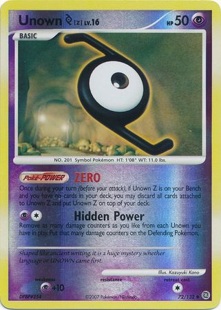 Once during your turn (before your attack), if Unown Z is on your Bench and you have no cards in your deck, you may discard all cards attached to Unown Z and put Unown Z on top of your deck.