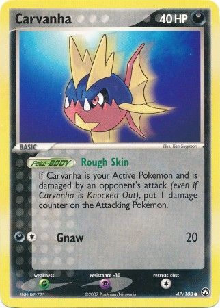 If Carvanha is your Active Pokémon and is damaged by an opponent's attack (even if Carvanha is Knocked Out), put 1 damage counter on the Attacking Pokémon.