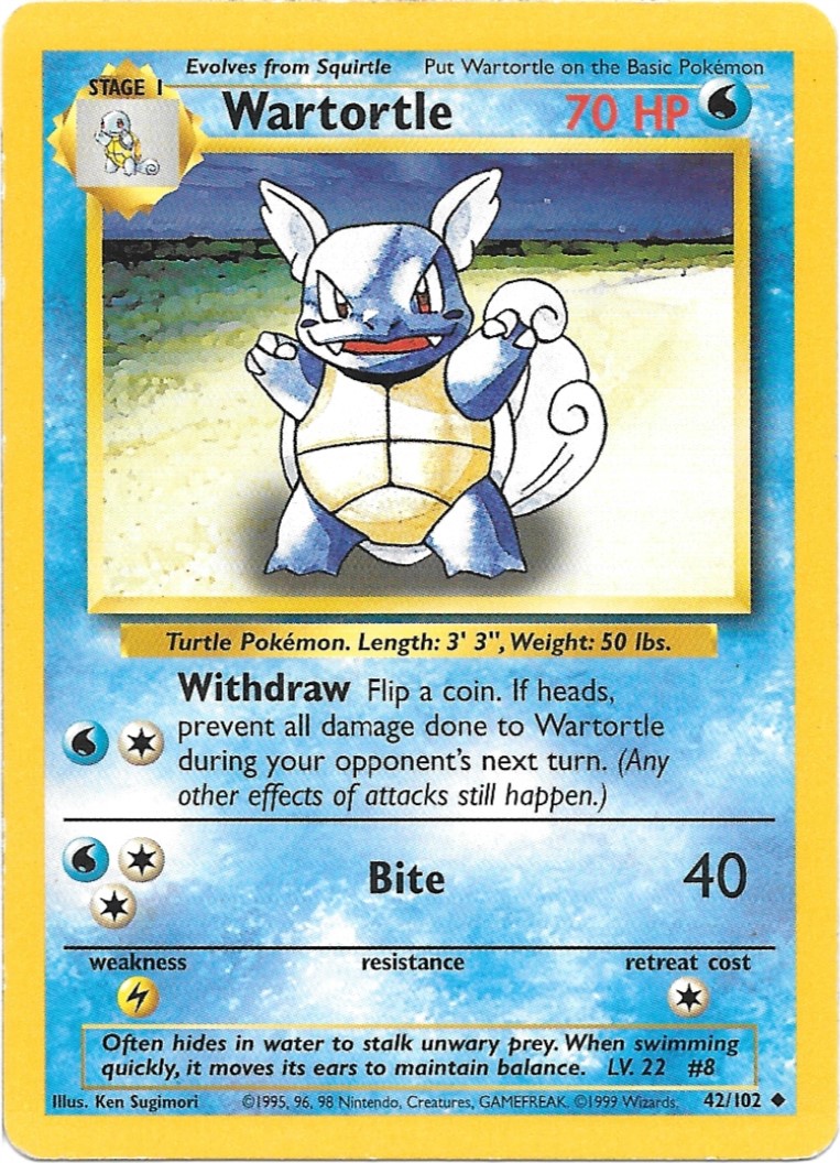 Flip a coin. If heads, prevent all damage done to Wartortle during your opponent's next turn. (Any other effects of attacks still happen.)