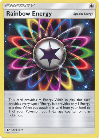 This card provides Colorless Energy. While in play, this card provides every type of Energy but provides only 1 Energy at a time. When you attach this card from your hand to 1 of your Pokémon, put 1 damage counter on that Pokémon.