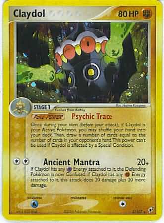 Once during your turn (before your attack), if Claydol is your Active Pokémon, you may shuffle your hand into your deck. Then, draw a number of cards equal to the number of cards in your opponent's hand. This power can't be used if Claydol is affected by a Special Condition.