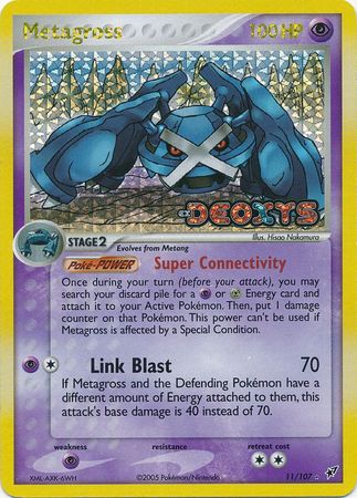 Once during your turn (before your attack), you may search your discard pile for a Psychic or Metal Energy card and attach it to your Active Pokémon. Then, put 1 damage counter on that Pokémon. This power can't be used if Metagross is affected by a Special Condition.