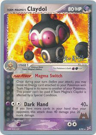 Once during your turn (before your attack), you may move an Energy card attached to your Pokémon with Team Magma in its name to another of your Pokémon. This power can't be used if Team Magma's Claydol is affected by a Special Condition.