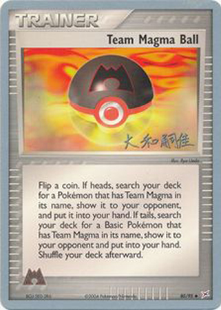 Flip a coin. If heads, search your deck for a Pokémon that has Team Magma in its name, show it to your opponent, and put it into your hand. If tails, search your deck for a Basic Pokémon that has Team Magma in its name, show it to your opponent and put it into your hand. Shuffle your deck afterward.
