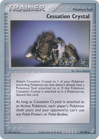 As long as Cessation Crystal is attached to an Active Pokémon, each player's Pokémon (both yours and your opponent's) can't use any Poké-Powers or Poké-Bodies.