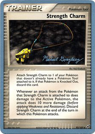Whenever an attack from the Pokémon that Strength Charm is attached to does damage to the Active Pokémon, the attack does 10 more damage (before applying Weakness and Resistance). Discard Strength Charm at the end of the turn in which this Pokémon attacks.