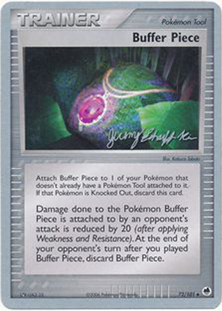 Damage done to the Pokémon Buffer Piece is attached to by an opponent's attack is reduced by 20 (after applying Weakness and Resistance). At the end of your opponent's turn after you played Buffer Piece, discard Buffer Piece.