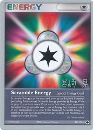 Scramble Energy can be attached only to an Evolved Pokémon (excluding Pokémon-ex). Scramble Energy provides Colorless Energy. While in play, if you have more Prize cards left than your opponent, Scramble Energy provides every type of Energy but provides only 3 in any combination at a time. If the Pokémon Scramble Energy is attached to isn't an Evolved Pokémon (or evolves into Pokémon-ex), discard Scramble Energy.
