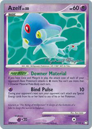 If you have Uxie and Mesprit in play, the attack cost of each of your opponent's Basic Pokémon's attacks is more. You can't use more than 1 Downer Material Poké-Body each turn.