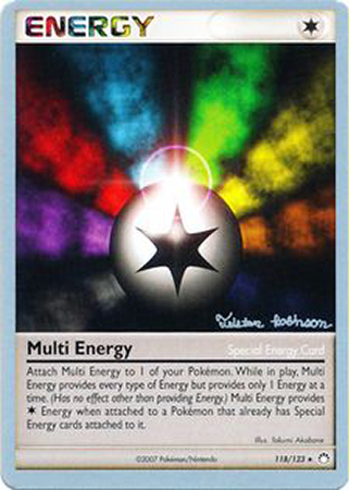 Attach Multi Energy to 1 of your Pokémon. While in play, Multi Energy provides every type of Energy but provides only 1 Energy at a time. (Has no effect other than providing Energy.) Multi Energy provides Colorless Energy when attached to a Pokémon that already has Special Energy cards attached to it.