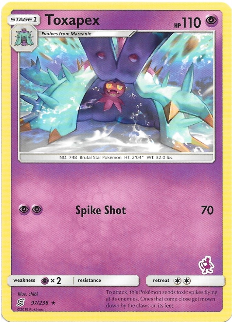 To attack, this Pokémon sends toxic spikes flying at its enemies. Ones that come close get mown down by the claws on its feet.