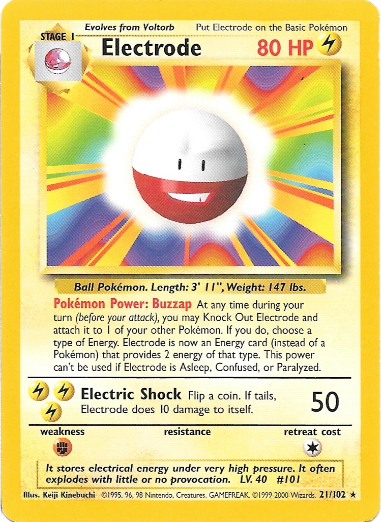 Flip a coin. If tails, Electrode does 10 damage to itself.