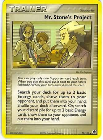 Search your deck for up to 2 basic Energy cards, show them to your opponent, and put them into your hand. Shuffle your deck afterward. Or, search your discard pile for up to 2 basic Energy cards, show them to your opponent, and put them into your hand.