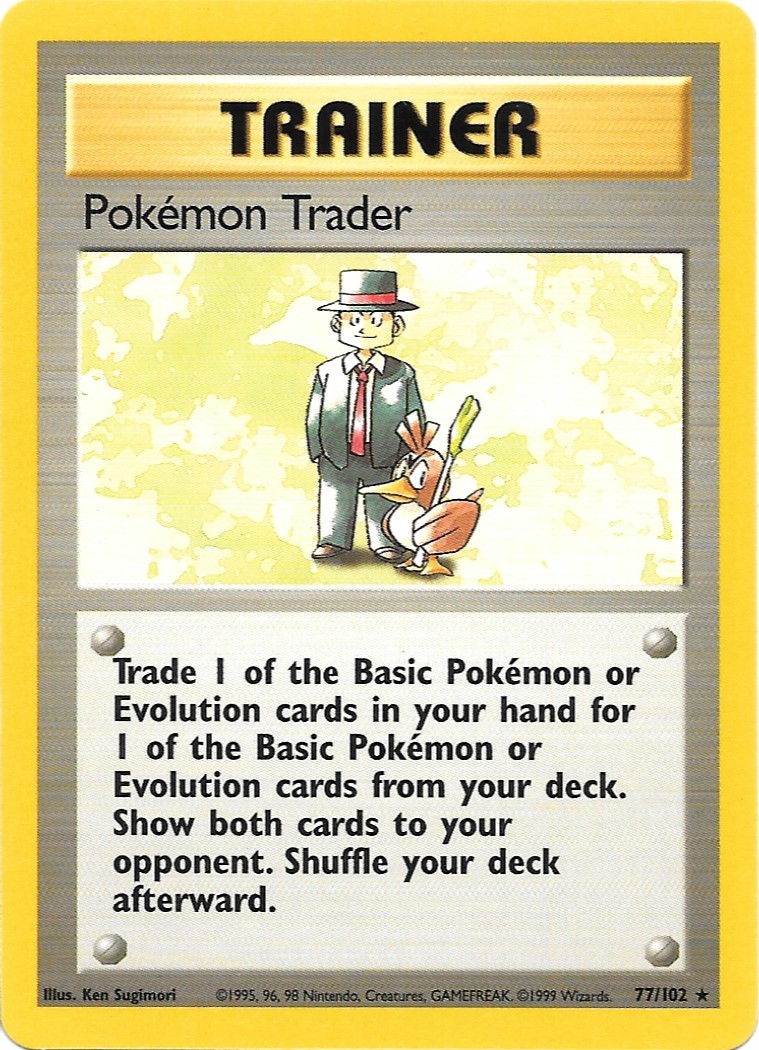 Trade 1 of the Basic Pokémon or Evolution cards in your hand for 1 of the Basic Pokémon or Evolution cards from your deck. Show both cards to your opponent. Shuffle your deck afterward.