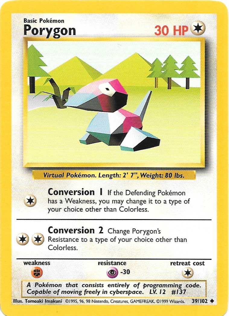 A Pokémon that consists entirely of programming code. Capable of moving freely in cyberspace.