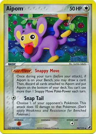 Once during your turn (before your attack), if Aipom is on your Bench, you may draw a card. Then, discard all cards attached to Aipom and put Aipom on the bottom of your deck. You can't use more than 1 Snappy Move Poké-Power each turn.